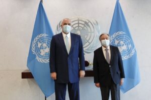 Kryeministri Rama, i cili në këtë vizitë është së bashku me Ministren për Evropën dhe Punët e Jashtme Olta Xhaçka, u takua sot me Sekretarin e Përgjithshëm të OKB, António Guterres ku diskutuan për programin e përparësitë e presidencës shqiptare të KS në tryezën drejtuese të OKB, dhe gatishmërinë për të ofruar kontributin e saj në shërbim të paqes dhe sigurisë, të drejtave të njeriut dhe zhvillimit të qëndrueshëm ndërkombëtar. r.p