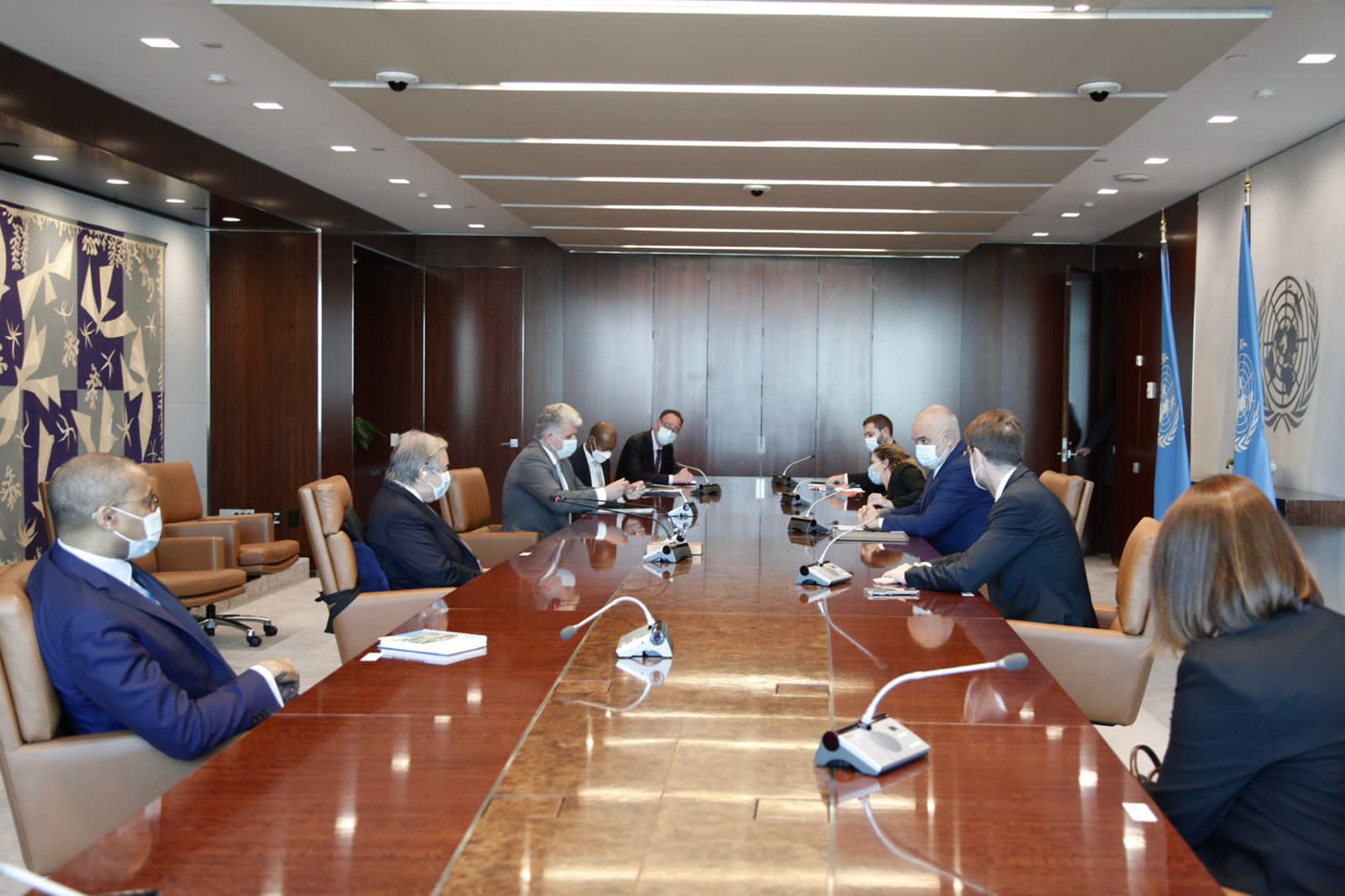 Kryeministri Rama, i cili në këtë vizitë është së bashku me Ministren për Evropën dhe Punët e Jashtme Olta Xhaçka, u takua sot me Sekretarin e Përgjithshëm të OKB, António Guterres ku diskutuan për programin e përparësitë e presidencës shqiptare të KS në tryezën drejtuese të OKB, dhe gatishmërinë për të ofruar kontributin e saj në shërbim të paqes dhe sigurisë, të drejtave të njeriut dhe zhvillimit të qëndrueshëm ndërkombëtar. r.p