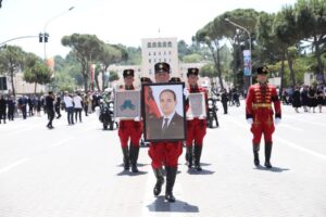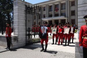 Në homazhe nuk mori pjesë kryeministri Edi Rama, i cili ndodhet në një vizitë zyrtare në SHBA, nga prej ku do të kthehet ditën e nesërme.