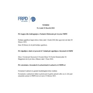 Komisioni Qendror i Zgjedhjeve në FRPD shpall hapjen e fushatës zgjedhore nga 1 gushti deri në 30 shtator. Dita e Zgjedhjeve do të jetë data 1 tetor 2022.
