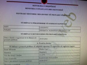Me anë të një postimi në Facebook, gazetari Klodian Tomorri shkruan se dokumenti tregon se Çuçi është pronar i subjektit ‘Albanian Sailing Club’.