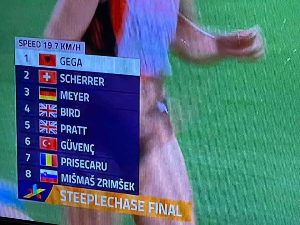 Atletja shqiptare shkëlqeu në natën që duhet të tregonte veten. Nga metri i parë deri te i fundit, Gega dominoi garën dhe arriti të fitonte me kohën 9:11.31, duke marrë medaljen e artë dhe ngjitur Shqipërinë në majën e Europës. Një garë e jashtëzakonshme e Gegës.
