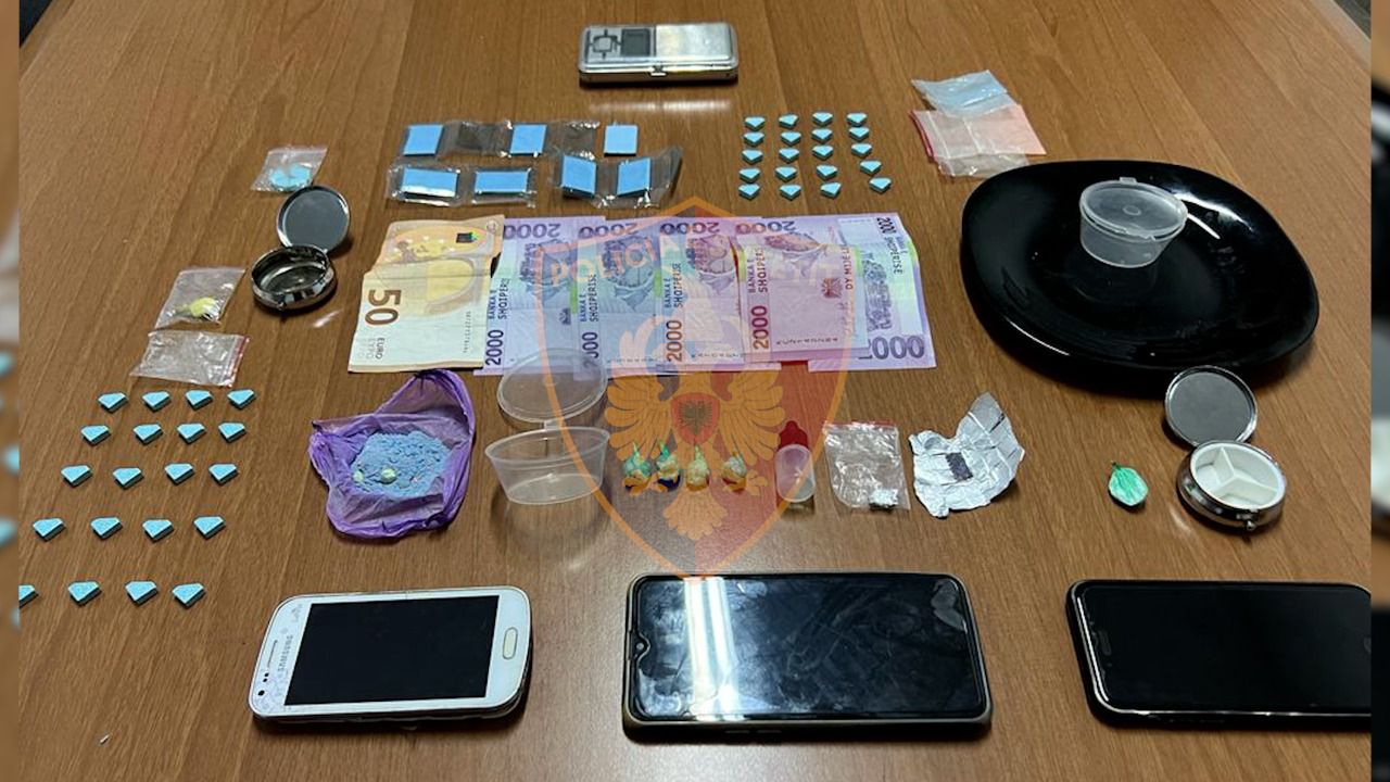 Sekuestrohen sasi lënde të dyshuara narkotike ekstazi, LSD, MDMA, lëndë e dyshuar narkotike kokainë e ndarë në doza gati për shitje dhe shuma parash që dyshohet se janë përfituar nga ky aktivitet kriminal.
