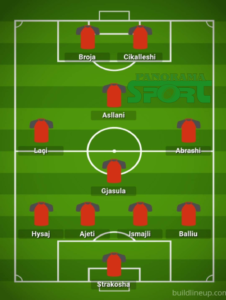 Në portë do të jetë Strakosha, në krahun e djathtë të mbrojtjes Balliu, ndërsa në qendër Ismajli dhe Ajeti. Në të majtë kapiteni Hysaj. Treshja e mesfushës do të përbëhet nga Gjasula, Abrashi dhe Laçi, ndërsa risia është lojtari pas dy sulmuesve. Sulmi do të jetë me dyshen Cikalleshi-Broja.