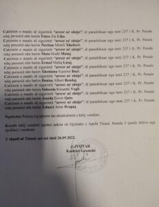 1. G.N, me detyrë Përgjegjës i Sektorit Ligjor në IEVP Fier, që nga muaji Qershor i vitit 2018, i dyshuar për kryerjen e veprave penale “Falsifikim i dokumenteve”, “Falsifikim i vulave, stampave dhe formularëve”, “Shpërdorim detyre” parashikuar nga nenet 186,190, 248 dhe të K.Penal. (Në cilësinë e përgjegjësit të sektorit juridik nuk ushtron detyrat e përcaktuara nga ligji, lejon dhe kryen falsifikimin e dokumenteve dhe falsifikimin e formularëve për të dënuarit, të cilët kanë përfituar ulje dënimi në mënyrë të pa drejtë në 41 raste).