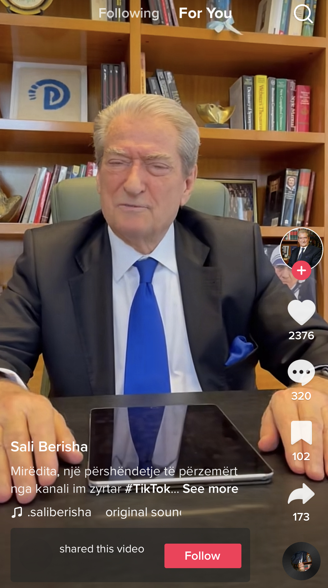 Kreu i PD, Sali Berisha që prej vitesh dominon Facebook me mbi 1 milionë ndjekës shqiptarë, ka hapur prej sot kanalin e tij në tik tok.