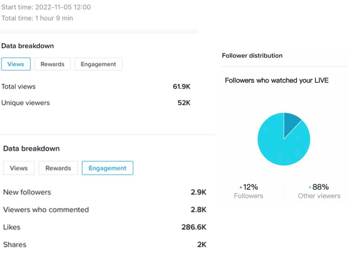 Për vetëm 60 minuta bashkëbisedim live me qytetarët, Kryetari i PD ka marrë 286.6 mijë pëlqime, 61.9 mijë shikime në total dhe mbi 3 mijë shpërndarje, sipas statistikave të publikuara nga vetë rrjeti social TikTok.