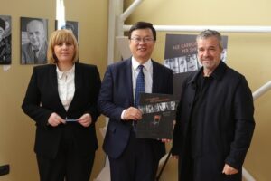 Ambasadori Zhou Ding vizitoi dhe ekspozitën “Një karrige për shkrimtarët”, me autor Roland Tashon, e cila prej dy javësh vijon të jetë e hapur në hapësirat e Qendrës Kombëtare të Librit dhe Leximit.a.b