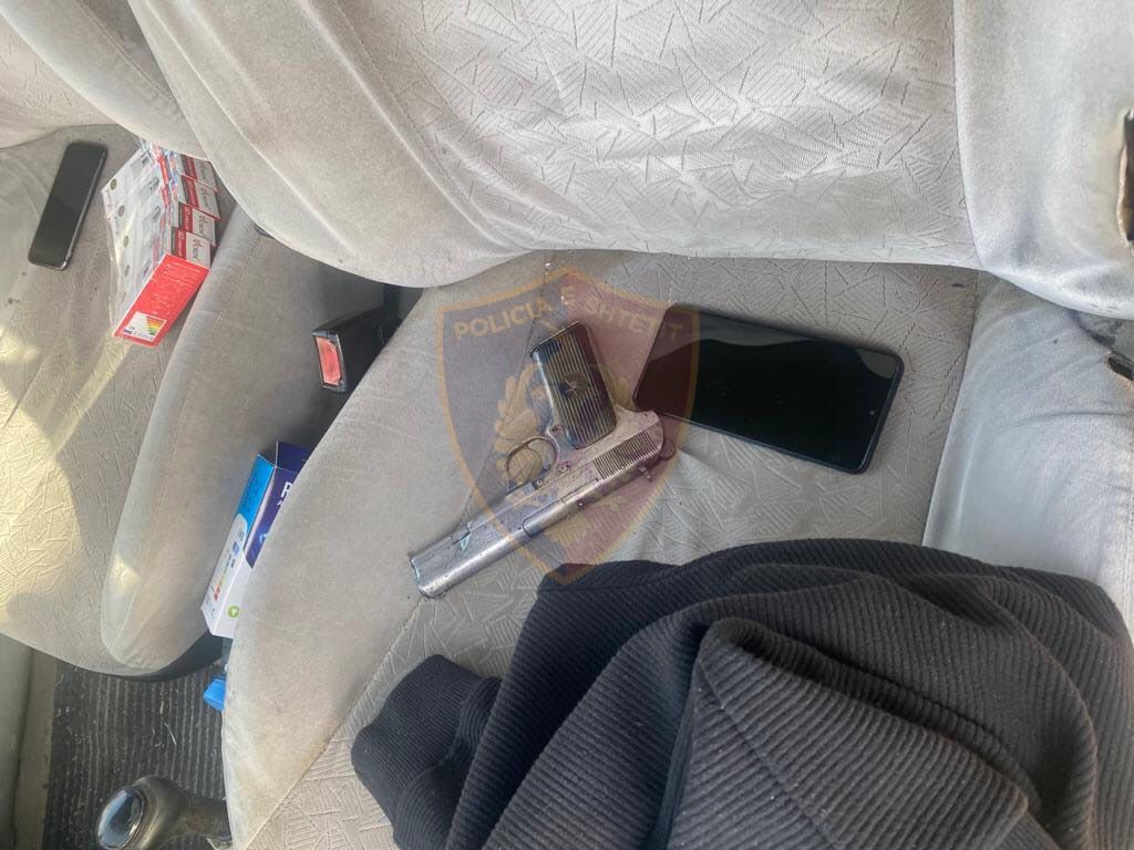 Gjatë kontrolit në automjet, shërbimet e Policisë gjetën dhe sekuestruan në cilësinë e provës materiale një armë zjarri pistoletë dhe municion luftarak.