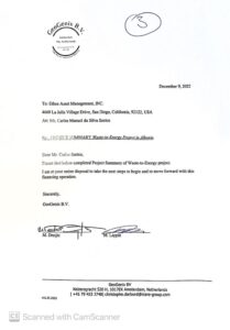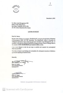 Në dt.6 dhjetor 2022 kompania e inceneratorit të Tiranës shpreh interesin për të bashkëpunuar me ETHOS Asset Management në San Diego, për të gjetur investitorë në vlerën 100 milionë euro. Pra Veliaj gënjeu. Kompania e inceneratorit nuk i ka këto para.