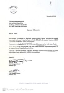 Dokumenti i dytë, po i datës 6 dhjetor, kompania e inceneratorit të Tiranës i bën me dije kompanisë Ethos se ka 20 milionë euro në një bankë në Itali.