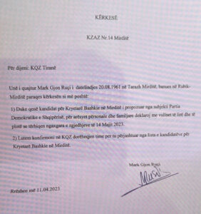 Ruçi ka deklaruar se tërhiqet nga gara për arsye personale dhe familjare siç shkruan ai në shkresë.