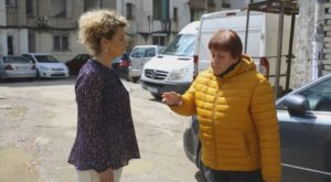 _“Në këtë lagje kam që në vitin 1980. Plehrat nuk hiqen asnjëherë. Rruga ka qenë këtu me trotuar. Kur kemi ardhur në fillim ishte e rregullt pastaj ishin këta dhe na e hoqën trotuarin. Këtu është si në katund, kur bie shi balta bëhet deri në gju. A nuk jemi ne si të gjithë të tjerët, pse gjithandej po rregullohet dhe lagjIa jonë nuk rregullohet? Për çfarë arsye? Edhe ne i japim votat e të gjitha detyrimet, lekët na i marrin, për ujë të pijshëm, për pastrim, gjelbërim. Vijnë ndonjëherë i shohim ata njerëzit që pastrojnë, por çfarë të pastrosh, shih si i ke makinat. Ka raste kur dal në mëngjes me çunin që ta çoj në çerdhe me karrocë, duhet ta ngre karrocën se shiko ku është hyrja, të ngresh karrocën që të hysh në shtëpi. Më ndihmo të keqen që të nxjerr fëmijën nga hyrja e pallatit_”, tha një zonjë.