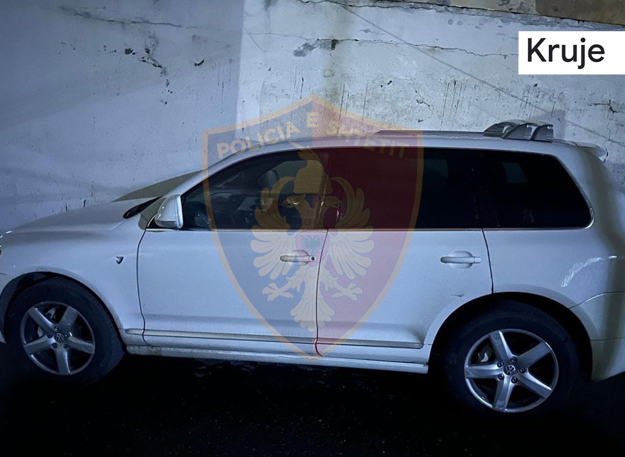 Shërbimet e Policisë, bazuar në informacionet e siguruara, kanë lokalizuar në rrugën e lagjes “Abaze”, Krujë, si dhe kanë bllokuar automjetin tip “Volkswagen Touareg” që drejtohej nga shtetasi B. M.