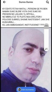 ”Denoncohet blerësi i votave në Spitallë, Durrës. Ai është Fetah Mataj kushëri i drejtorit të policisë së Durrësit! #sb”, shkruan Berisha në rrjete sociale.