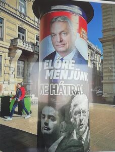 Në të majtë është sllogani i fushatës zgjedhore të vitit 2022, përzgjedhur nga Viktor Orbán, i cili fitoi me partinë e tij Fidesz mandatin e katërt qeverisës në Hungary.