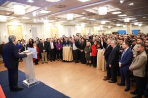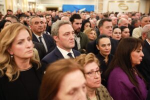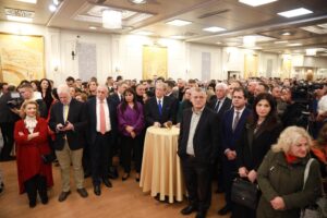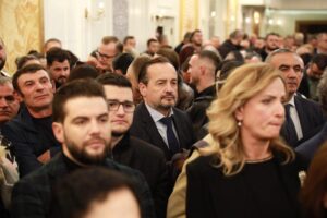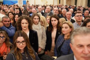 Në ceremoninë festive morën pjesë tbemelues të PD, studentë të dhjetorit, izyrtarë, deptetë e figura të tjera të së djathtës shqiptare.