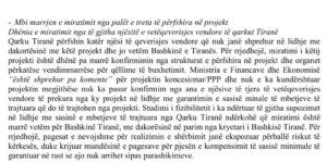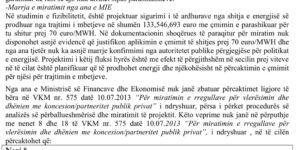 Ministria e Financave ‘është shprehur pa koment’ për projektin koncensionar/PPP dhe nuk e ka kundërshtuar projektin megjithëse nuk ka pasur konfirmim nga ana e njësive të vetëqeverisjes vendore të prekura nga ky projekt në lidhje me garantimin e sasive minimale të mbetjeve të trajtuara që do të trajtohen nga projekti.