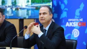 “Rama tani i është sulur vijës liqenore të Pogradecit, për ta bërë Pogradecin rastin tipik të dytë, viktimë të kombinimit të korrupsionit ekonomik me korrupsion politik, duke transferuar pasuritë publike në duart e investitorëve, të cilët në fakt janë ajo pjesa familjare e bashkëpunimit të Ramës në korrupsionin politik dhe ekonomik, për të gllabëruar dhe rrëmbyer pasurinë tonë të përbashkët publike që na takon të gjithëve, sidomos në zona të veçanta, siç është bregdeti apo siç është zona e mbrojtur e liqenit të Pogradecit, duke ua dhënë këto prona njerëzve të targetuar dhe të faktuar si anëtarë të bandave kriminale siç ka ndodhur sot me Velipojën.