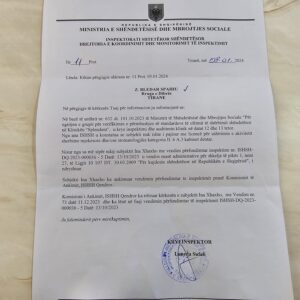 Ky është dokumenti ku bazohet babai i të ndjerit, në të cilin shkruhet se ndaj klinikës është vendosur masë administrative për shkelje të ligjit përkatës. Vajza e Roland Xhaxhos, Ina Xhaxho ka ankimuar këtë masë, por sërish është lënë në fuqi. a.b