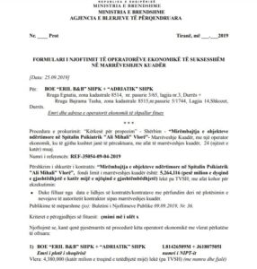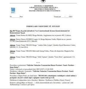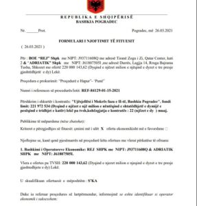UKT Tirane, Bashkia Durrës, Bashkia Pogradec, Agjencia Shtetërore e Prokurimeve të Përqendruara ndër të cilat spikat për nga vlera kontrata rezultat i procedurës së kufizuar në kuadër të procesit të rindërtimit me objekt :