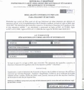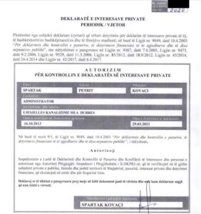 Spartak Kovaçi në shkelje flagrante të ligjit në konflikt të hapur interesi në kundërshtim me të paktën nenin 21, nenin 24, neni 31, përfiton para publike.