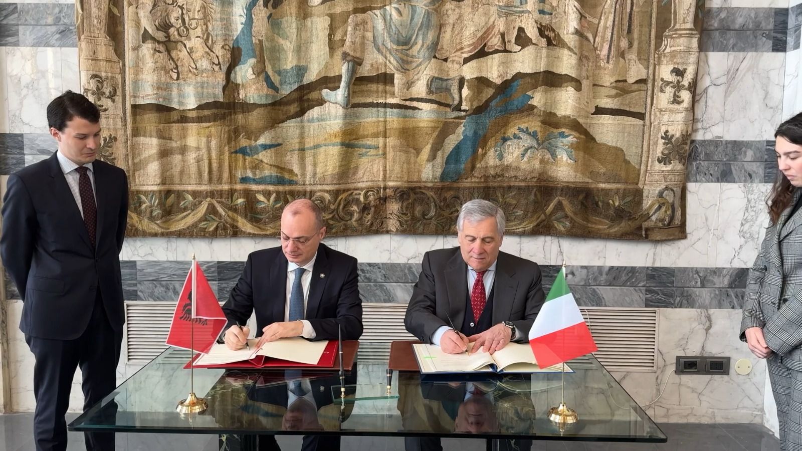 Eshtë nënshkruar sot në Romë marrëveshja për njohjen e pensioneve Shqipëri-Itali nga ministrat e Jashtëm të dy vendeve, Igli Hasani dhe Antonio Tajani.