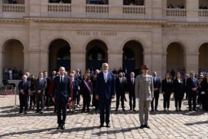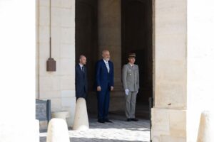 Pas nderimeve ushtarake në Ceremonialin shtetëror, Kryeministri Rama, u mikprit në Pallatin Elysee, nga Presidenti francez Emmanuel Macron, i cili shoqëroi Kryeministrin Rama në ambientet e brendshme të Pallatit, ku u prezantuan delegacionet respektive e më pas dhanë një deklaratë për shtyp për mediat e pranishme.