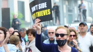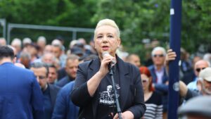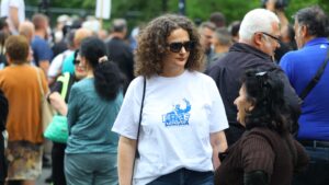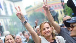 Vajza e Sali Berishës, Argita Malltezi ishte e pranishme në protestë me bluzën me mbishkrimin “Free Berisha”.