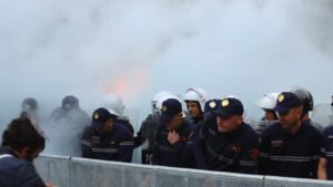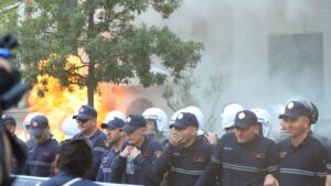 Protesta ka pasur momente tensioni kur protestuesit kanë hedhur molotov drejt godinës së institucionit, ndërsa tymi ka mbuluar derën e bashkisë. Policia ka zëvëndësuar sot barrierat metalike me barrierat prej betoni.