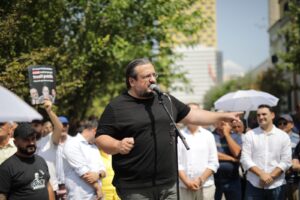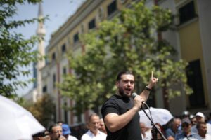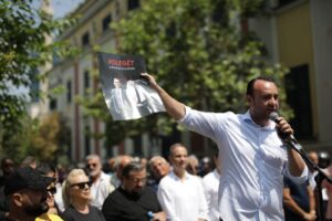 Anëtari i kryesisë së PD, Belind Këlliçi tha gjatë fjalës së tij se janë aty për të denoncuar me fakte e prova të gjitha aferat e Bashkisë dhe Veliajt.