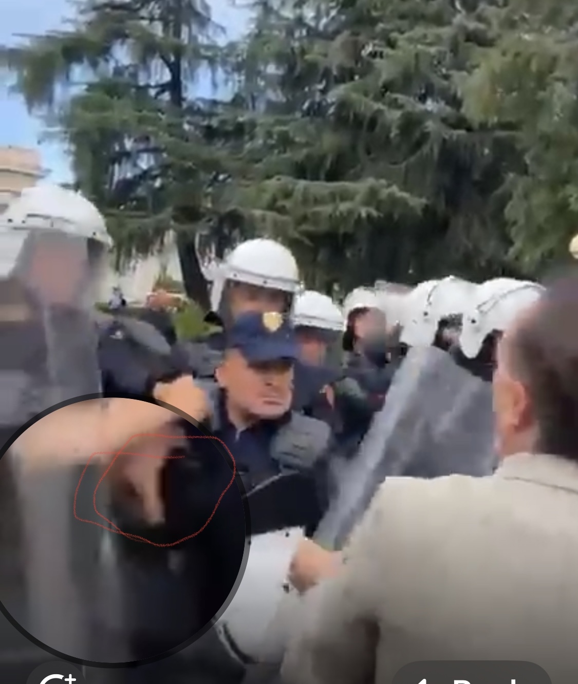 Një efektiv i forcave speciale gjatë përballjes me protestuesit tek parlamenti i Shqipërisë, ka nxjerrë edhe armën ndaj deputetëve të opozitës, Luan Baçi dhe Bledion Nallbati.