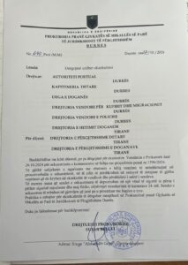 “Bashkangjitur me këtë shkresë po ju dërgojmë për ekzekutim vendimin e prokurorisë datë 26.10. 2024 për sekuestrimin e kontenierëve ne lidhje me procedimin penal nr.1596/2024.