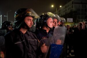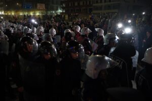 Ka provokuar protestën policia këtë mbrëmje teksa bëri përpjekjet e para për shpërndarjen e protestuesve një orë para orarit të deklaruar.