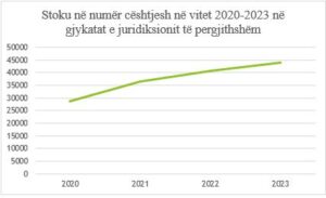 Më poshtë janë shifrat e stokut në gjykatat e shkallës së parë nga viti 2020 deri në vitin 2023: