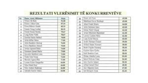 I pari është renditur Vilson Bala më 91 pikë dhe i fundit është renditur në vendin e 38-të Izet Hysa.