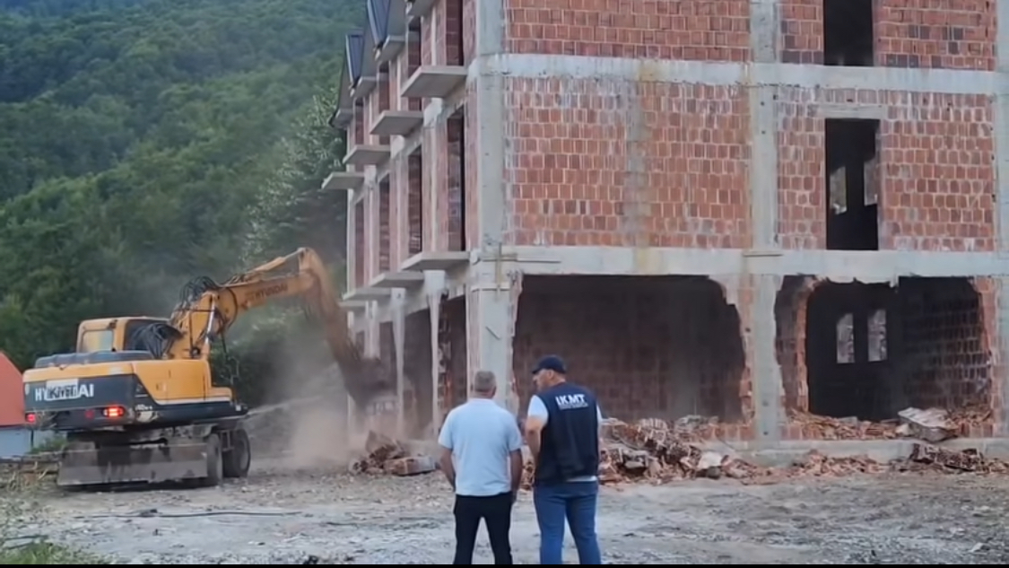 Por per shtetin, ajo ishte nji ndertese pa leje, ashtu si shpiza e drunit qe shemben nji nate ma perpara.