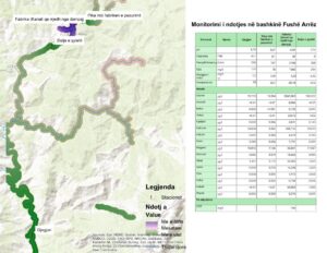 Harta e marrjes se kampioneve dhe nivelit te ndotjes, te dhena tabelare te rezultateve te analizave