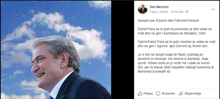 Ju e dini se dosjet tuaja do flasin, prandaj po perdorni si mburoje, me shume si kamikaz, Saje qorrin. Mbare bota po ju sodit me cullak se kurre! Sot, per te kaluar diten shpallini Habilajt kusherinj te Berishes! Eureka!!!”.