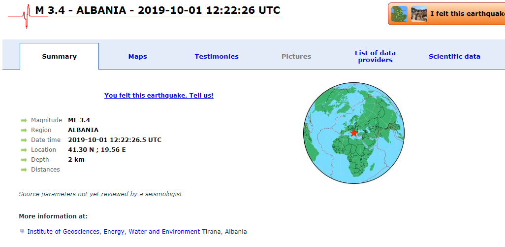 Së fundmi, epiqendra ka qënë në Shijak.Sipas të dhënave nga Qendra Europiane Mesdhetare Sizmike tërmeti ka qenë me magnitudë 3.4 të shkallës Rihter dhe epiqendra 12 km në veriperëndim të Shijakut. Lëkundja është ndjerë në orën 14:22 me orën lokale.