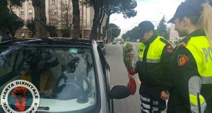 Drejtueset femra të automjeteve kanë marrës sot nga policia një buqet me lule. Forcat e policisë rrugore u dhuruan lulet duke u uruar festen...