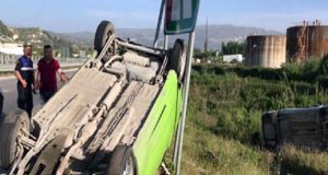 FOTO/ Vlorë, aksident i rëndë, një makinë përmbyset, tjetra përfundon në kanal