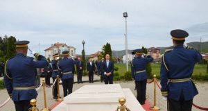 Presidenti i Republikës, Bujar Nishani dhe delegacioni që e shoqëron gjatë vizitës shtetërore në Kosovë zhvilloi homazhe dhe vendosi një kurorë me lule te varri...