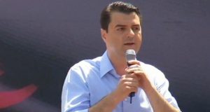 Basha ka ndaluar edhe njëherë në krye të shkallëve të selisë së PD-së, për t’iu drejtuar një fjalë përshëndetjeje qindra qytetarëve që mbushnin oborrin...
