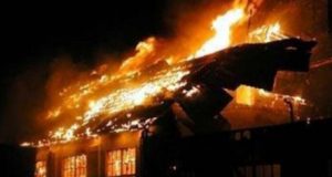 Një banesë dy katëshe është përfshirë nga zjarri.