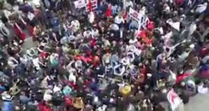 VIDEO nga DRONI/ Pamje të rralla, pjesëmarrje masive protestuesish