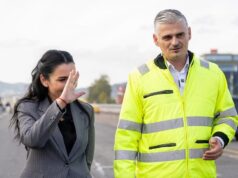 Belinda Balluku gjatë një vizite në kantierin e autostradës Durrës-Tiranë