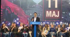 I biri i kreut të PD, Shkëlzen Berisha ndau një foto me të shoqen, Armina Mevlanin ndërsa ishin në mitingun e PD. Krahas fotos Berisha...
