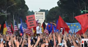I biri i kreut të PD, Shkëlzen Berisha ndau një foto me të shoqen, Armina Mevlanin ndërsa ishin në mitingun e PD. Krahas fotos Berisha...