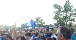 I biri i kreut të PD, Shkëlzen Berisha ndau një foto me të shoqen, Armina Mevlanin ndërsa ishin në mitingun e PD. Krahas fotos Berisha...